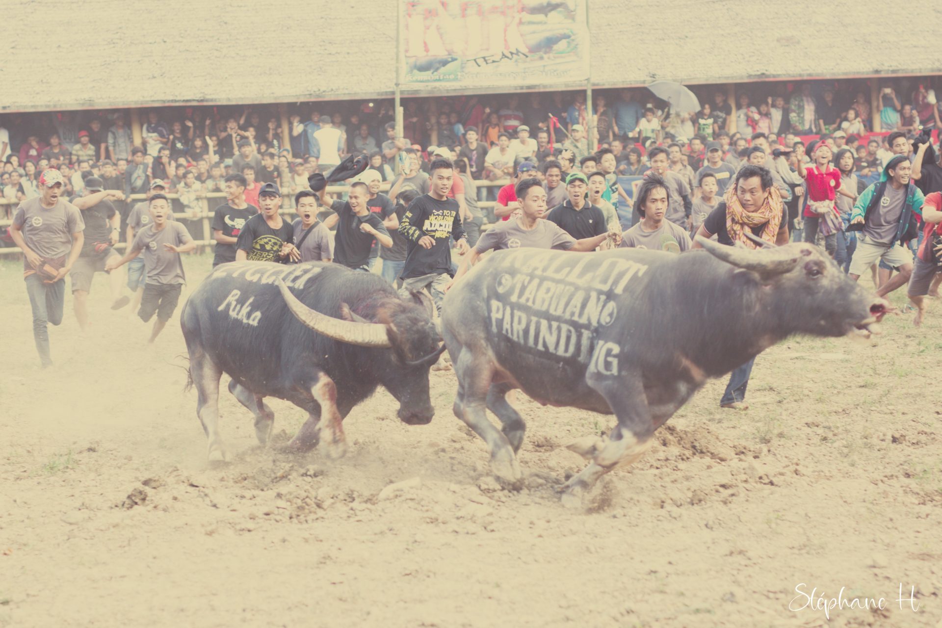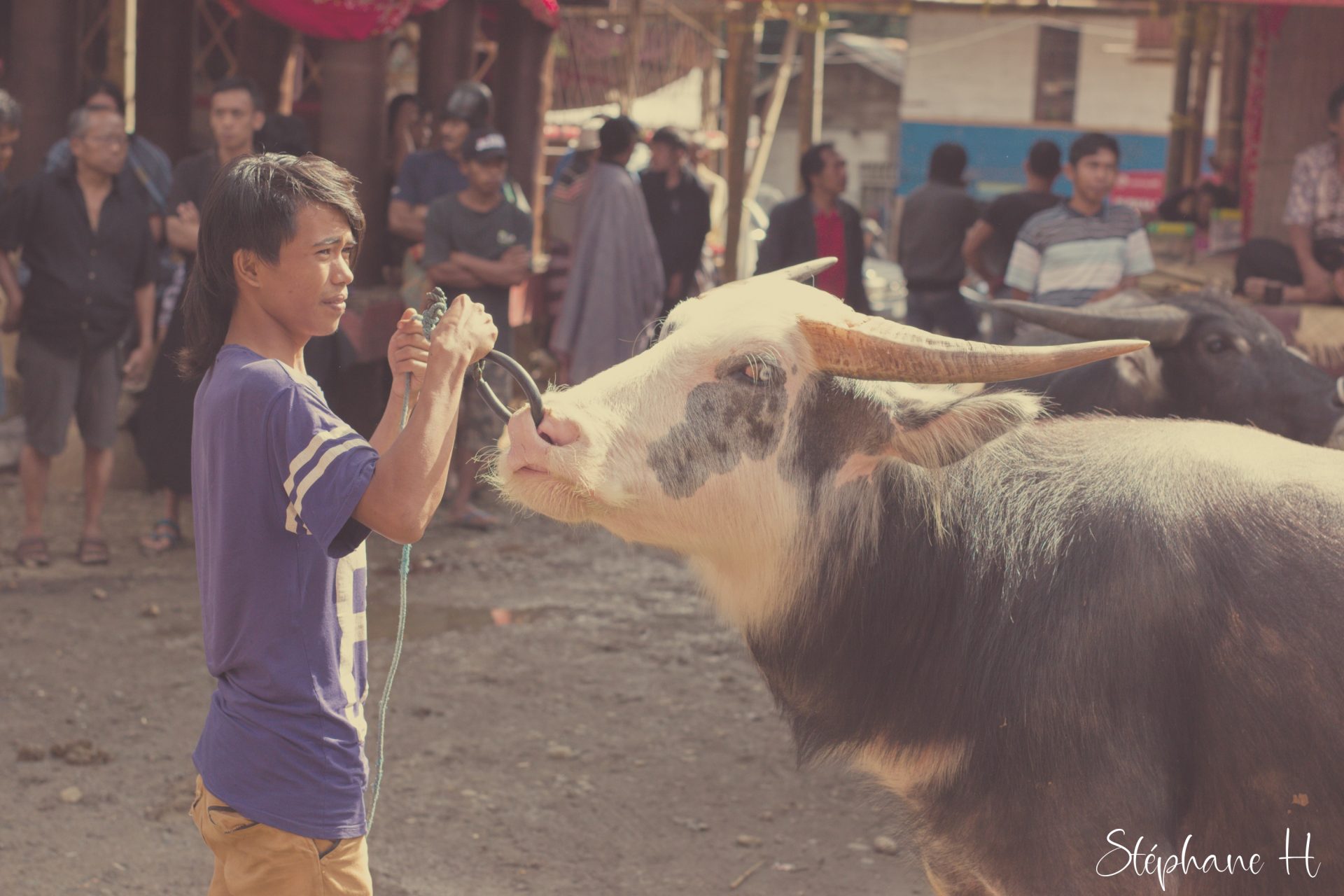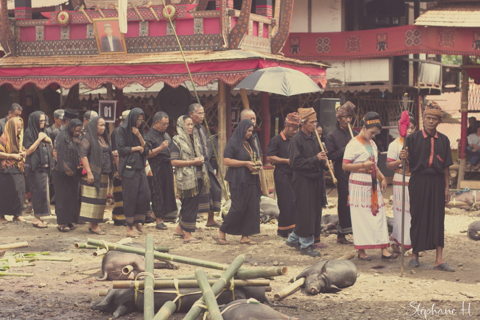 J’ai eu l’occasion de passer du temps parmi les Torajas. Contrairement à d’autres cultures. Les personnes ne meurent pas. Elles deviennent de grandes endormies. Qui sont momifiées et vivent avec leur famille, jusqu’à ce qu’une date soit trouvée pour l’enterrement. Lors de l’enterrement des buffles seront sacrifiés, et accompagneront la personne défunte dans l’autre monde, et la viande sera partagée entre tous. C’est un moment de fête. Le don et le contre don de buffles est au cœur de la société. On reconnait l’architecture Toraja à la forme particulière des toits, certains pensent que c’est un souvenir de la forme de bateaux qui leur aurait permis de venir s’installer dans cette île indonésienne il y a bien longtemps. Il y a quelques temps, ce peuple animiste, s’est converti au christianisme, faisant un syncrétisme, considérant les 3 jours au tombeau du Christ, de la même manière que leur phase de grand endormi avant de se relever et de poursuivre dans l’au delà son voyage.